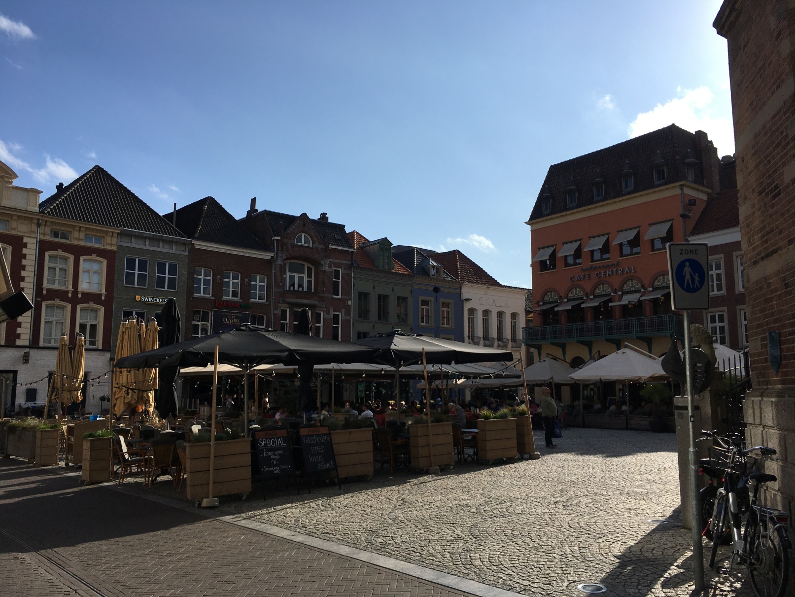 Die erste Tagesetappe von etwa 490 Kilometern führte mich zu meinem Zwischenstopp nach Venlo, Niederlande. Motorrad im Parkhaus abgestellt, im Hotel eingecheckt, frisch gemacht und dann eine kleine Erkundungsrunde durch Venlo. Nette kleine Stadt mit Uferpromenade entlang der Maas. Viel los auf dem Rathausmarkt. Dort gab es dann einen Burger und zwei Bier zum Abend. An der Hotelbar noch einen kleinen Cocktail. Das musste reichen. Am nächsten Morgen ging es ja weiter.