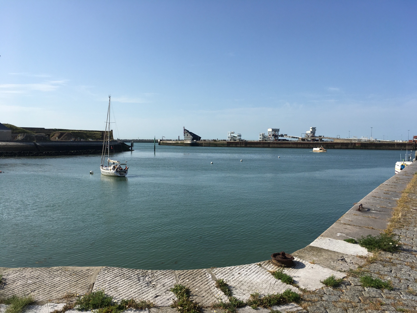 Weiterfahrt nach Calais zum Euro-Tunnel. Heute nochmal circa 350 Kilometer auf dem Bock gesessen. Die Vorbeifahrten an Antwerpen und Gent nervten, weil die Autobahnen komplett voll waren. Schließlich habe ich aber Calais erreicht und auch noch genügend Zeit übrig, um die Stadt etwas zu erkunden. Das Hotel befand sich strategisch günstig gelegen für die folgende Fahrt zum Check-In beim Euro-Tunnel. Allerdings waren es etwa 4 Kilometer durch die Innenstadt bis zum Hafen / Strand. Plus Umwege für Erkundungen. Plus Rückweg. Vermutlich um die 10 Kilometer zu Fuß.