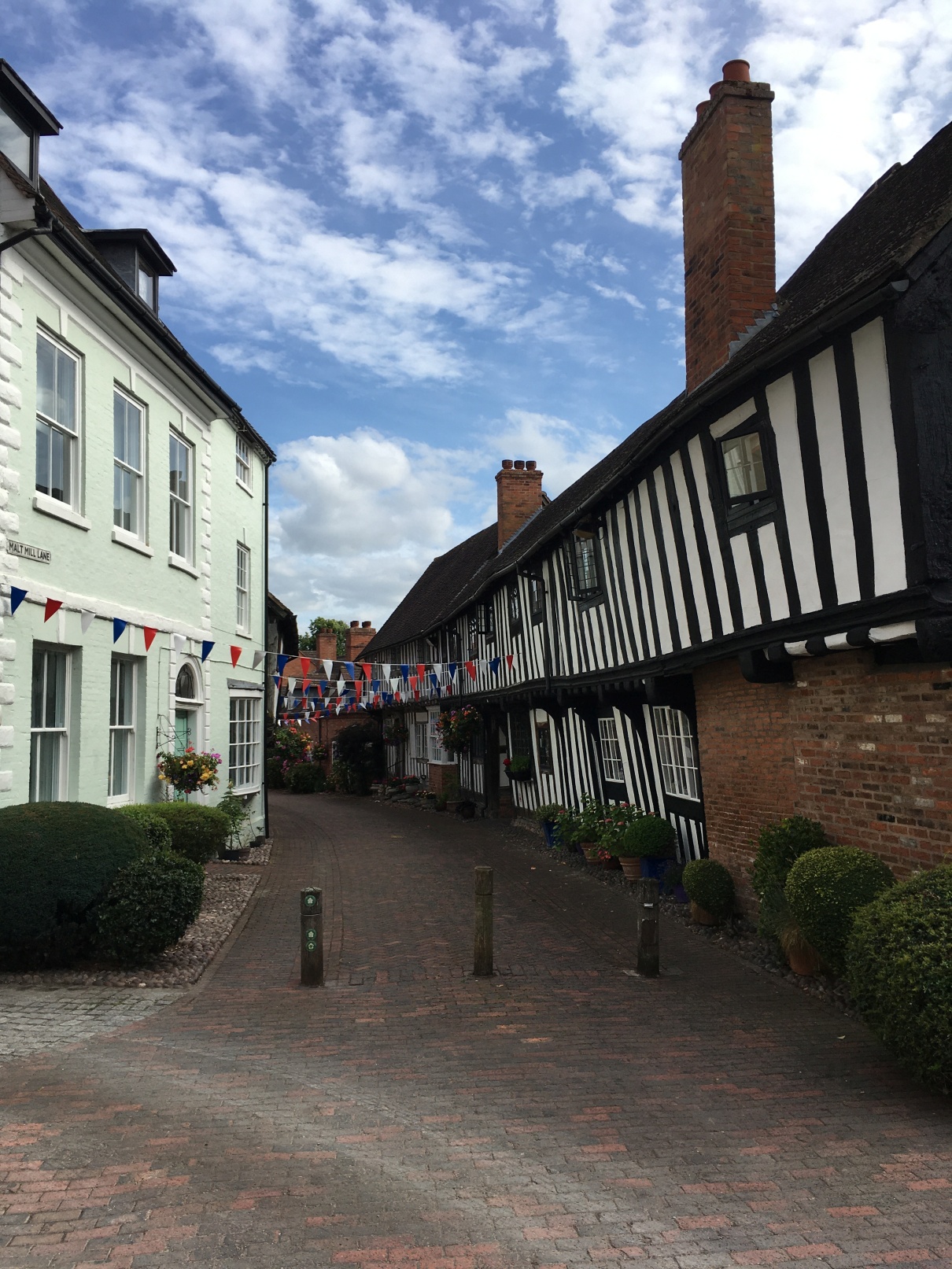 Nach dem Check-In im Hotel hatte ich noch die Gelegenheit einen kleinen Rundgang durch Alcester zu machen. Nettes kleines Örtchen. Viel Fachwerk. Und auch erstaunlich viele kleine Läden, z.B. Teppiche, Vorhänge, Antiquitäten, Modelleisenbahn, und ähnliches. Das kennt man von zuhause gar nicht mehr. Alcester war auch hübsch geschmückt mit vielen Pflanzen und Fähnchengirlanden. Aber sobald man die zentrale Straße abgelaufen ist, hat man auch schon alles von Alcester gesehen. Nun gut, als Übernachtungsort auf jeden Fall mehr als ausreichend.